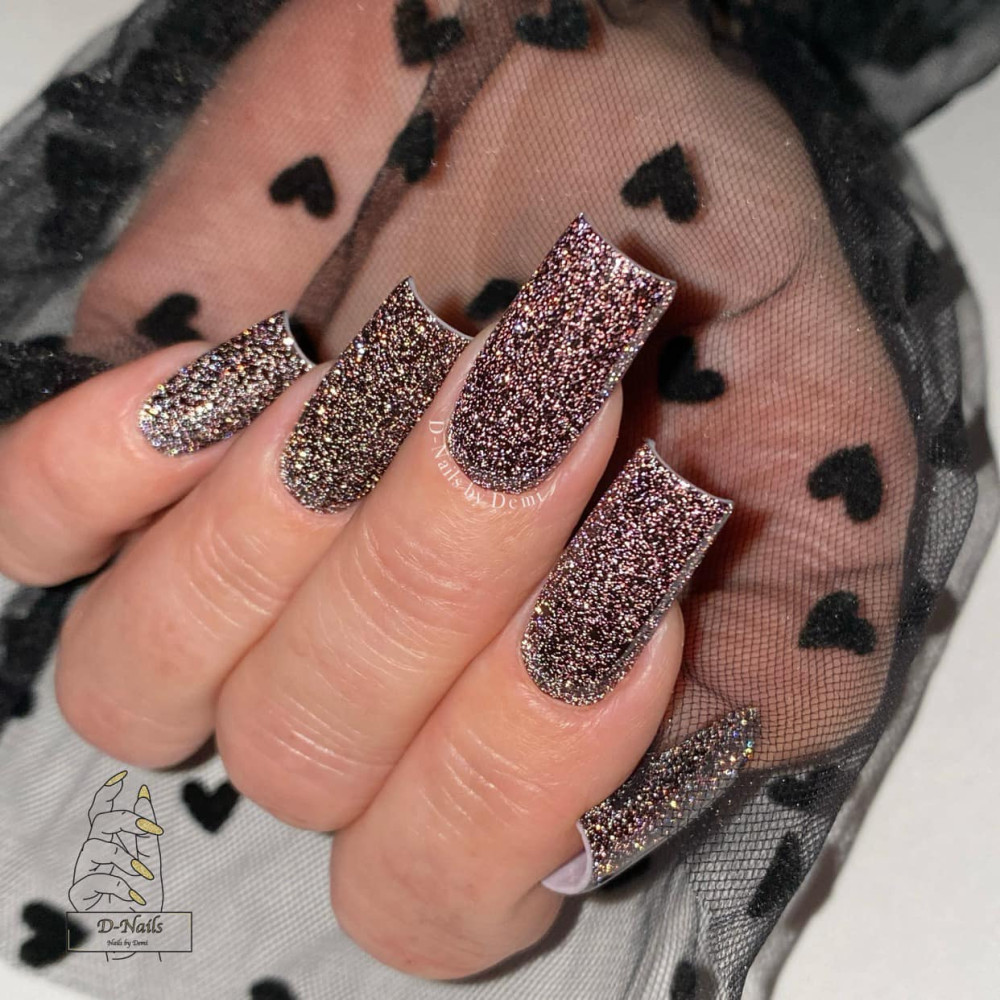 Геллак Eyeliner Glitter 15ml е професионален гел лак от Magnetic Nails Nederland, е силно пигментиран тъмен черен цвят (като Eyeliner), комбиниран с изключително фини блестящи частици за ефект на нежен sparkle. Благодарение на висококачествената формула, този гел лак съчетава отлична покривност с перфектно самонивелиране и безупречно лъскаво покритие.