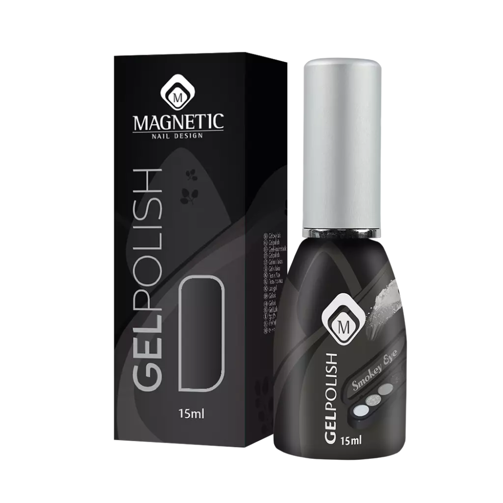Геллак Gelpolish Smokey Eye TPO Free 15ml е професионален гел лак от Magnetic Nails Nederland, Тъмно сив—черен cat-eye гел-лак, при който магнитните частици създават слаб оптичен отразяващ ефект, напомнящ на смоуки грим. Визията е драматична, с дълбочина и фин блясък, особено при силна светлина.
