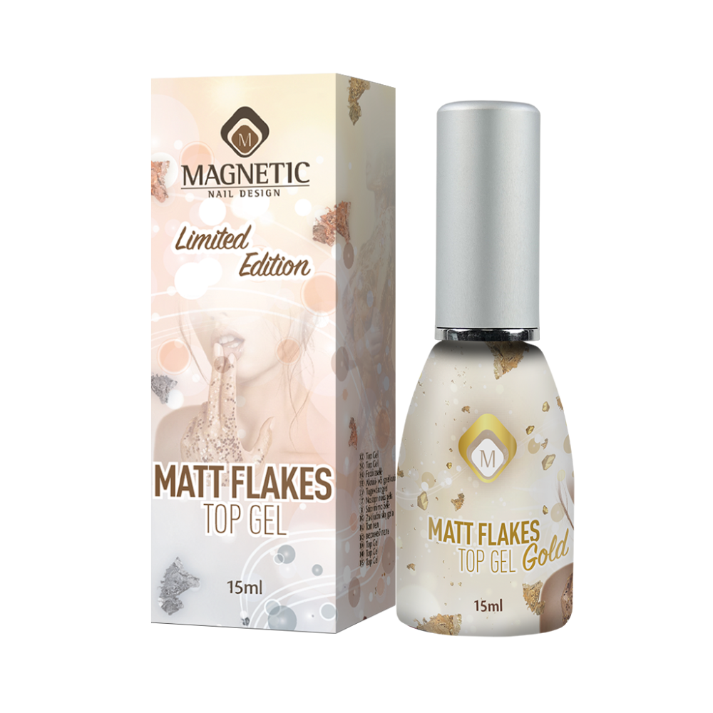 . Този професионален мат топ гел със златни частици създава изящен метален матт ефект. Вижте повече и поръчайте на MagneticNailDesign.bg.